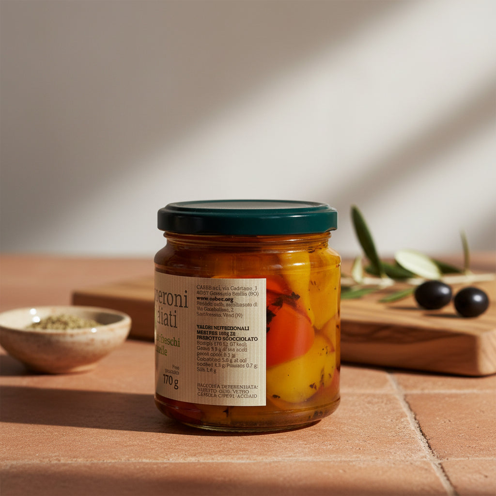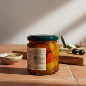Ardeii copți Caber – Peperoni Grigliati sunt lucrați manual din legume proaspete, fără coajă, apoi conservați în ulei de floarea-soarelui și oțet de vin. Gustul lor dulce și afumat îi face perfecți pentru antipasti, salate mediteraneene, sandvișuri sau ca garnitură pentru carne și brânzeturi.
