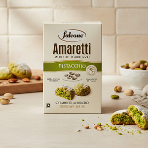 ursecurile moi cu fistic Falcone 170 g sunt biscuiți tipici italieni moi și aromatici, preparați după rețete tradiționale și îmbogățiți cu făină de fistic pentru o aromă intensă și gust delicat. Aceste fursecuri sunt produse fără ulei de palmier, fără grăsimi hidrogenate și fără conservanți, oferind un desert simplu și gustos, perfect pentru momentele de răsfăț.